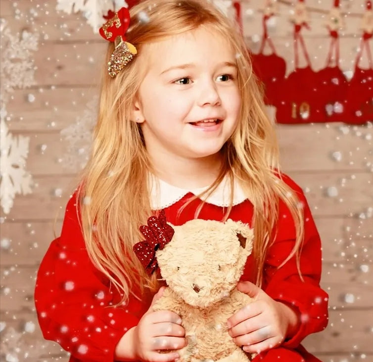 🎅Each set includes 3 personalised bows (optional) including a red retro Santa, tartan our Christmas bow as well as a candy cane, reindeer and a gingerbread man bow!! and a free pearl flower clip.